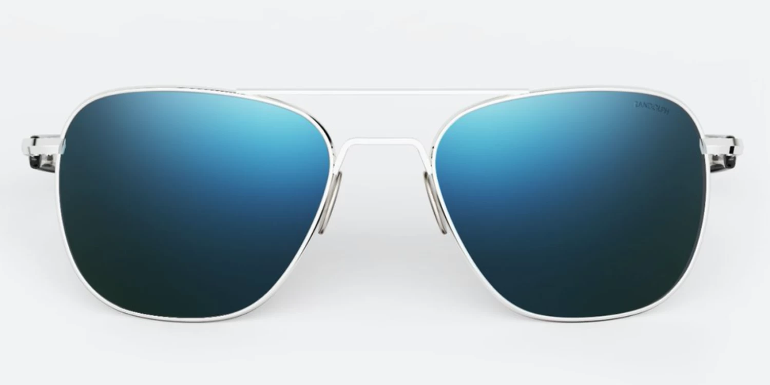 The Aviator in 23k White Gold. Elevate your style to new levels with sunglasses that shine as bright as a diamond ring. Plated with the precious metal, Rhodium, your Aviator will last a lifetime. Or two.