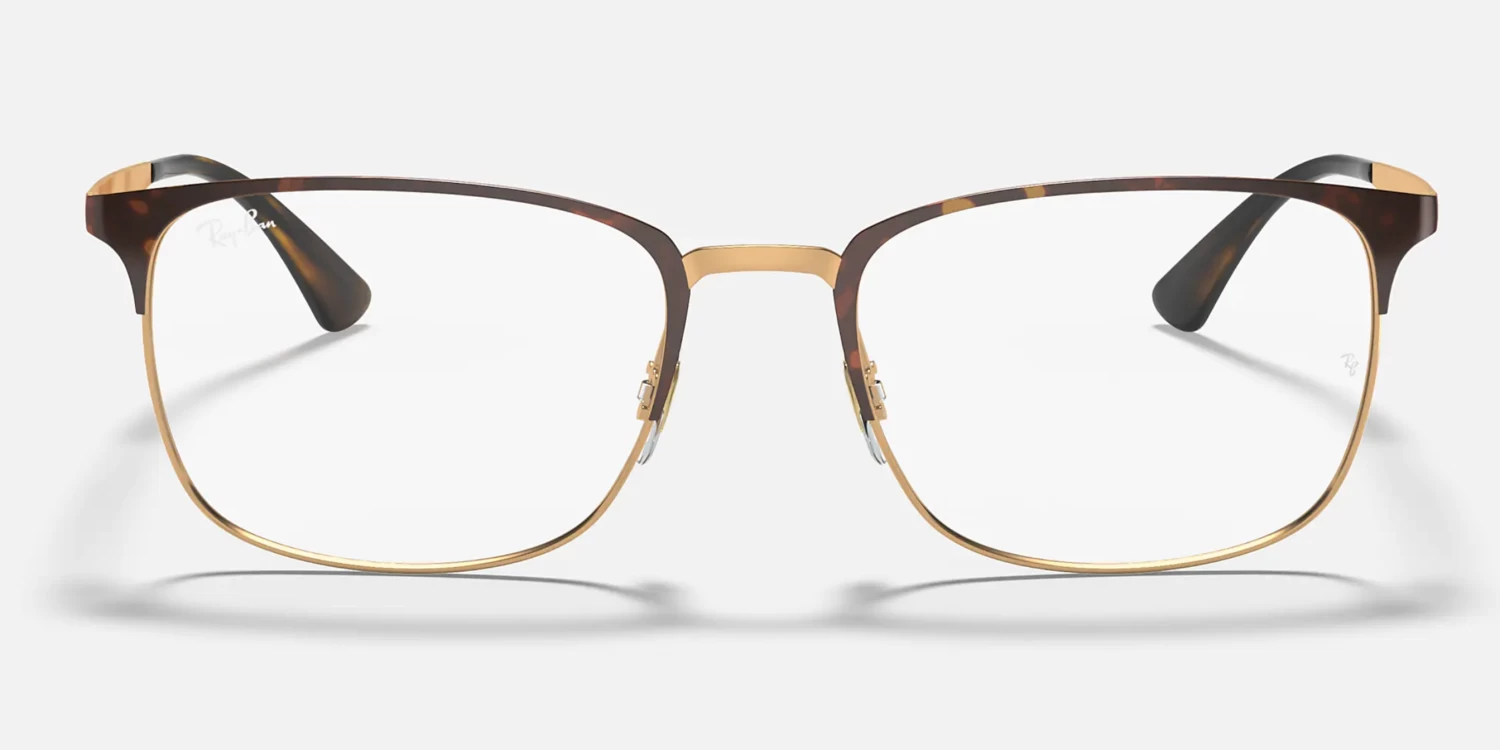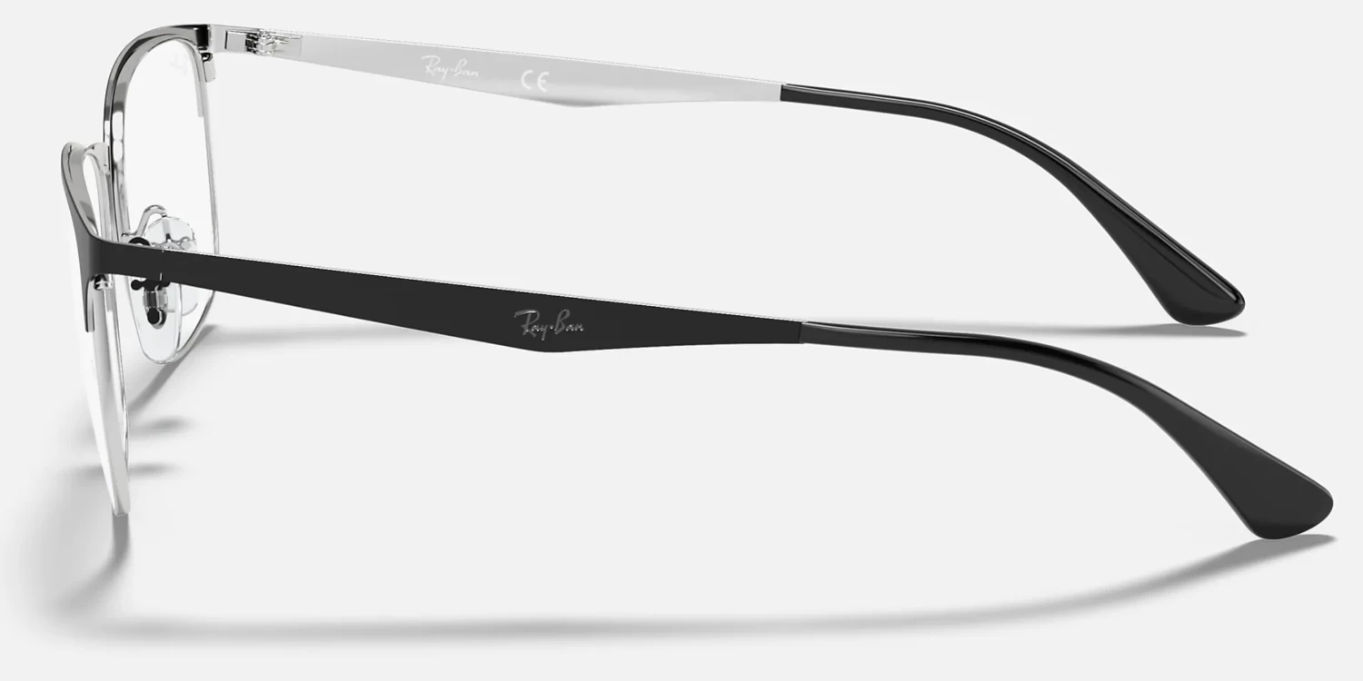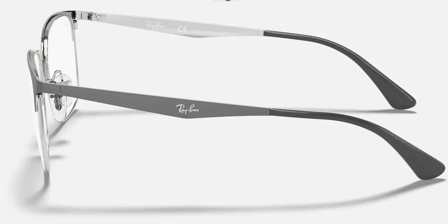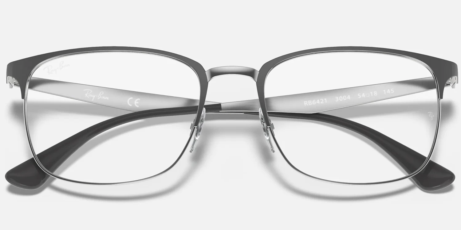 The RB6421 pairs rectangular full-rim construction with unisex squared semi-rim design and contrasting brow and rim/bridge. The model comes with flat temples, and of course, the engraved Ray-Ban logo.