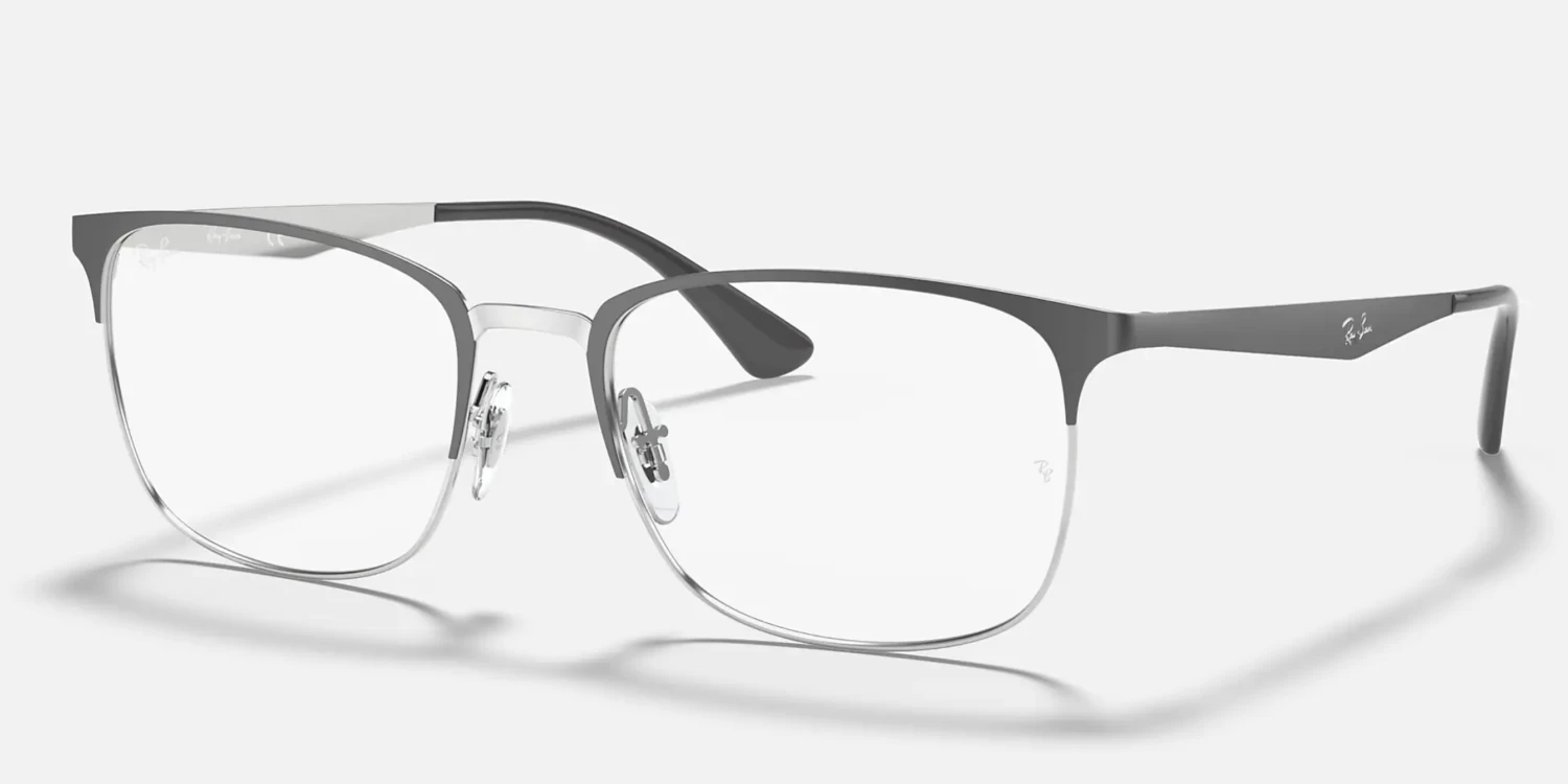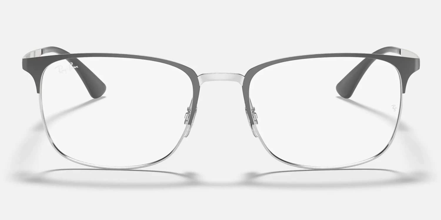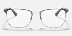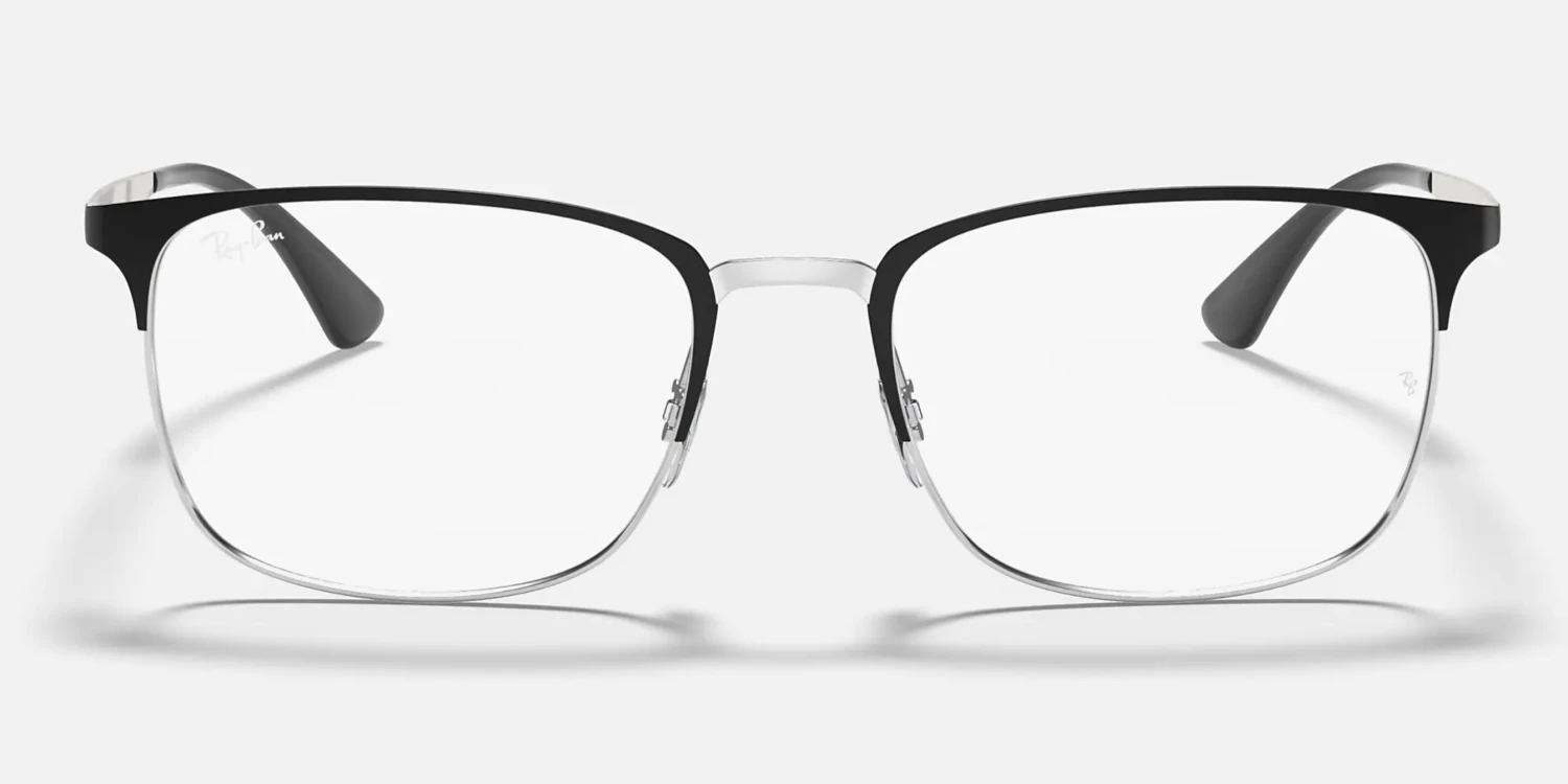 The RB6421 pairs rectangular full-rim construction with unisex squared semi-rim design and contrasting brow and rim/bridge. The model comes with flat temples, and of course, the engraved Ray-Ban logo.