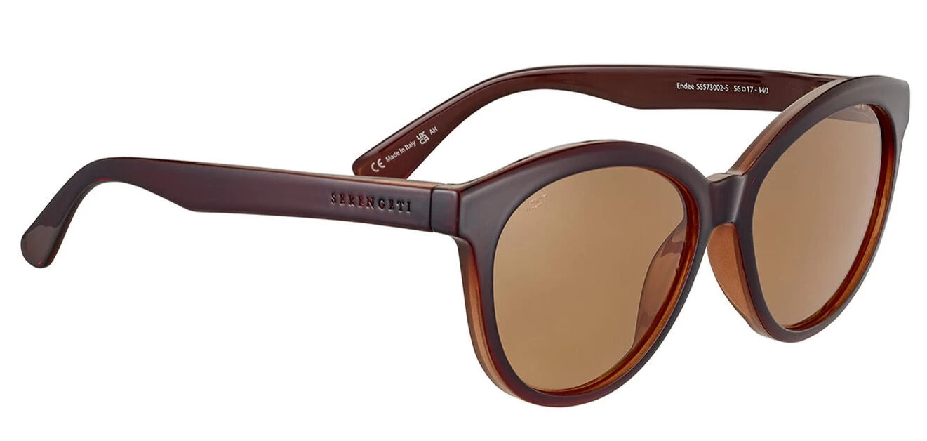 Ready for an over-the-top feminine trendy look? ENDEE is the new cat-eye sunglass in the Serengeti Sport collection. The frame is crafted with eco-friendly nylon endowed with small chamfer on the top, making the ENDEE a glamourous style full of character. The Saturn lens completes this pair of sunglasses, offering you incredible visual acuity and protection.